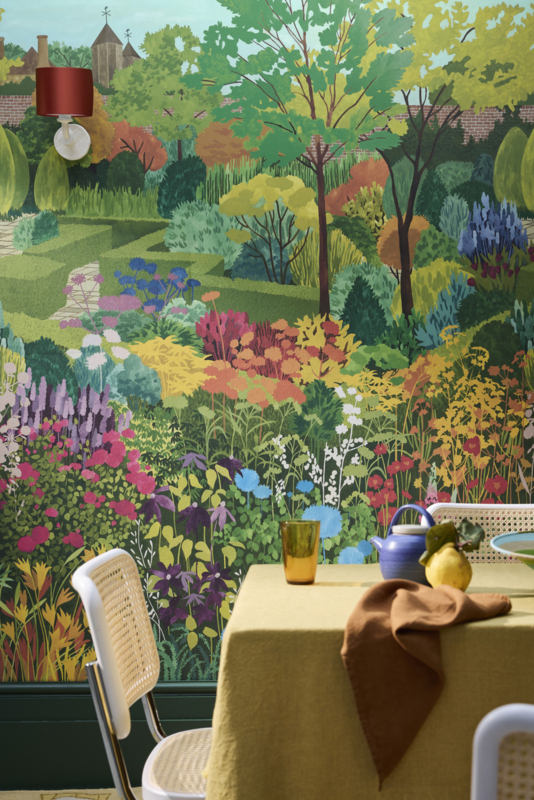 In the Garden is een collectie van totaal acht verschillende behangontwerpen en is een kleurrijke ode aan de betoverende relatie tussen interieur en buitenruimte, verenigd door het thema 'tuinen, groot en klein'.